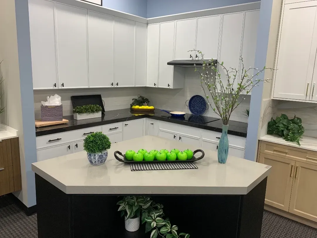 - Cabinets and flooring in one place — no need to coordinate multiple contractors